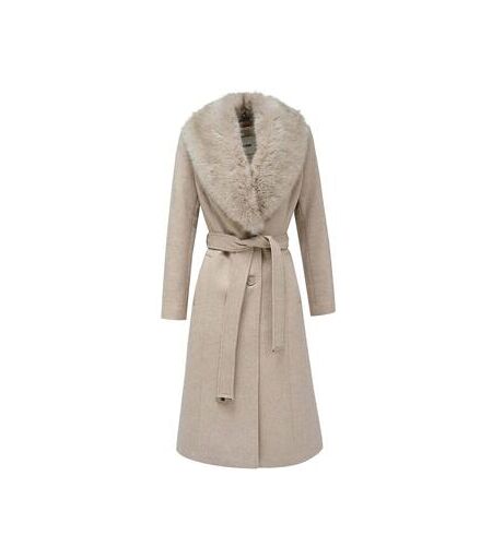 Manteau Salsa Long wool coat w/ faux fur and belt Beige Disponible en taille femme. EU S,EU M,EU L,EU XL. . Femme > Vetements > Manteau. ...