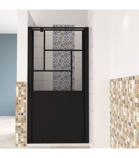 Les points forts ● Dimension : 120 x H.200 cm ● Cadre noir raffiné : Une finition noire mate qui sublime votre salle de bain avec une allure industrielle moderne. ● Verre trempé sécurisé : Épaisseur de 5 mm, offrant résistance et sécurité pour une utilisation quotidienne en toute sérénité. ● Verre Sérigraphie:Résistance accrue,Protège contre l’usure et les rayures. ● Facilité d’entretien,Surface lisse et facile à nettoyer. ● Effet atelier verrière : Son design à carreaux noirs donne du caractère et du charme à votre espace douche. ● Structure en aluminium robuste : Qualité et Durabilité,Exceptionnelles,Résistante à l’humidité et à la corrosion pour une durabilité maximale. ● Installation facile : Parfaite pour s’adapter à différentes configurations de salle de bain. ● Système d’ouverture pratique : Porte pivotante fluide et ergonomique, offrant un accès facile et un gain de place optimal. ● Nettoyez régulièrement votre porte de douche pour d'éviter le dépôt de calcaire et autres ...