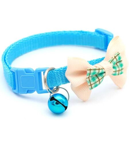 Collier En Nylon Imprimé À Carreaux Pour Animaux De Compagnie,N?ud Réglable,Fournitures Pour Chiots Et Chiens,Ornement Pour Chat Et Chaton,Accessoires De Décoration Avec Cloche,1pc.Blue.