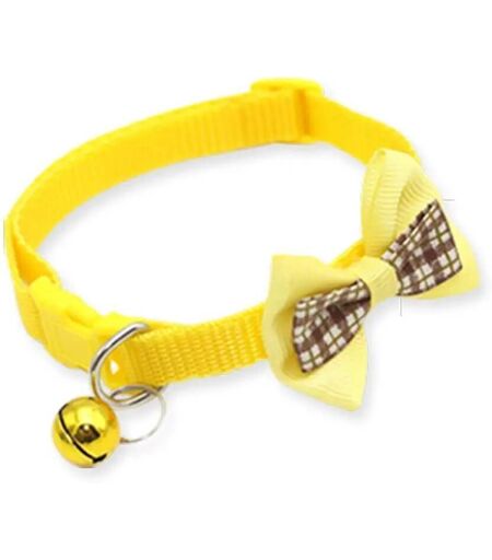 Collier En Nylon Imprimé À Carreaux Pour Animaux De Compagnie,N?ud Réglable,Fournitures Pour Chiots Et Chiens,Ornement Pour Chat Et Chaton,Accessoires De Décoration Avec Cloche,1pc.Yellow.