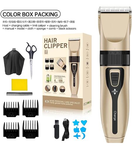 Specifications; Hign-concerned Chemical:None; Motor type:ROTARY; Battery Charging Time:more than 2 hours; Blade Material:other; Battery Life:over 90 minutes; Is Batteries Included:Yes; Power type:Battery operation; Function:Electric length adjustment,wet haircut,dry haircut,Washing knives under water,Fast Charging,Charging indication; Maximum cutting length:11 - 20 mm; Minimum cutting length:0.5 - 1 mm; Length adjustment method:Change of nozzles; Number of nozzles:3 - 4 pcs; Size:18.5x4.5cm; Material:metal; Commodity Quality Certification:ce; Item Type:hair trimmer; Motor:vibratory; Product Features 1:Household electric hair clipper set; Product Features 2:Low noise, long endurance hair trimmer; Product Features 3:USB rechargeable shaver hair cutting tool; Product Features 4:Electric beauty trimmer; Product Features 5:Hair clipper electric push clipper; Product Features 6:Electric hair clipper for household use; Product Features 7:Professional electric hair clipper; Product Features 8:Level 5 length adjustment; Product Features 9:Titanium ceramic blade; Product Features 10:Strong power; Product Features 11:The blade can be washed with water; Product Features 12:Equipped with four limit combs; Product Features 13:USB rechargeable; Product Features 14:Low noise design; Product Safety Information/Warning:Please use according to the instructions provided; Product Features; 1. Five - level length fine - tuning : It can be precisely adjusted according to different length requirements. The product is designed with 5 length settings: 0.8mm/1.2mm/1.4mm/1.8mm/2.0mm. It also comes with 4 guide combs (3mm, 6mm, 9mm, 12mm).; 2. Titanium - gold ceramic blade head : The product uses heat - treated ceramic blades, which are sharp with a low coefficient of friction. They won't overheat even after long - term use, protecting the skin of babies from harm. The contact surface of the blade features an R - shaped rounded - corner design, conforming to the curve of the human head, making it safe for both the elderly and children to use.; 3. Powerful performance : Equipped with a high - speed all - copper core motor, it has strong power and won't get stuck in hair, suitable for all hair types.; 4. Washable blade head : The blade head can be detached and washed with water, keeping the hair clipper clean and hygienic at all times, giving your family peace of mind.; 5. 3 - 12mm length - limiting combs : Comes with four length - limiting combs. You can choose different combs to trim your hair to the desired length. Even beginners can easily become barbers.; 6. USB - rechargeable : Supports multiple charging modes. You can charge it with a power bank, a mobile phone charger, or a computer's USB port. It's both safe and convenient. Product Details; Product Name : Rechargeable Hair Clippe; Product Color : Golde/Grey/White; Product Dimensions : Outer packaging size: 20.6X14X6.2cm, Body size: 18.5x4.5cm; Product Weight : 290g; Blade Head Material : High - quality steel + ceramic... ...