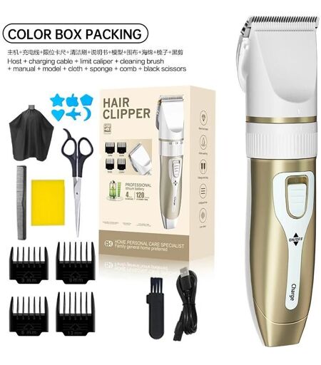 Specifications; Hign-concerned Chemical:None; Motor type:ROTARY; Battery Charging Time:more than 2 hours; Blade Material:other; Battery Life:over 90 minutes; Is Batteries Included:Yes; Power type:Battery operation; Function:Electric length adjustment,wet haircut,dry haircut,Washing knives under water,Fast Charging,Charging indication; Maximum cutting length:11 - 20 mm; Minimum cutting length:0.5 - 1 mm; Length adjustment method:Change of nozzles; Number of nozzles:3 - 4 pcs; Size:18.5x4.5cm; Material:metal; Commodity Quality Certification:ce; Item Type:hair trimmer; Motor:vibratory; Product Features 1:Household electric hair clipper set; Product Features 2:Low noise, long endurance hair trimmer; Product Features 3:USB rechargeable shaver hair cutting tool; Product Features 4:Electric beauty trimmer; Product Features 5:Hair clipper electric push clipper; Product Features 6:Electric hair clipper for household use; Product Features 7:Professional electric hair clipper; Product Features 8:Level 5 length adjustment; Product Features 9:Titanium ceramic blade; Product Features 10:Strong power; Product Features 11:The blade can be washed with water; Product Features 12:Equipped with four limit combs; Product Features 13:USB rechargeable; Product Features 14:Low noise design; Product Safety Information/Warning:Please use according to the instructions provided; Product Features; 1. Five - level length fine - tuning : It can be precisely adjusted according to different length requirements. The product is designed with 5 length settings: 0.8mm/1.2mm/1.4mm/1.8mm/2.0mm. It also comes with 4 guide combs (3mm, 6mm, 9mm, 12mm).; 2. Titanium - gold ceramic blade head : The product uses heat - treated ceramic blades, which are sharp with a low coefficient of friction. They won't overheat even after long - term use, protecting the skin of babies from harm. The contact surface of the blade features an R - shaped rounded - corner design, conforming to the curve of the human head, making it safe for both the elderly and children to use.; 3. Powerful performance : Equipped with a high - speed all - copper core motor, it has strong power and won't get stuck in hair, suitable for all hair types.; 4. Washable blade head : The blade head can be detached and washed with water, keeping the hair clipper clean and hygienic at all times, giving your family peace of mind.; 5. 3 - 12mm length - limiting combs : Comes with four length - limiting combs. You can choose different combs to trim your hair to the desired length. Even beginners can easily become barbers.; 6. USB - rechargeable : Supports multiple charging modes. You can charge it with a power bank, a mobile phone charger, or a computer's USB port. It's both safe and convenient. Product Details; Product Name : Rechargeable Hair Clippe; Product Color : Golde/Grey/White; Product Dimensions : Outer packaging size: 20.6X14X6.2cm, Body size: 18.5x4.5cm; Product Weight : 290g; Blade Head Material : High - quality steel + ceramic... ...