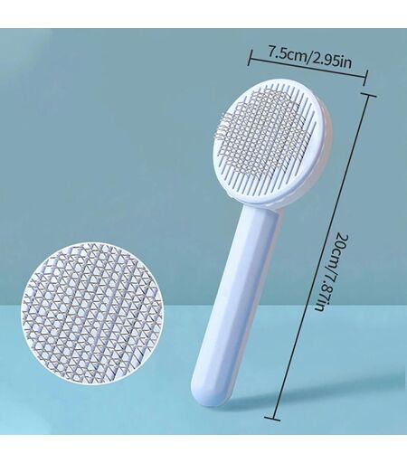 Specifications; Hign-concerned Chemical:None; Material:Plastic; Brand Name:VZZ; Item Type:Brushes; Type:cats; Product sellpoints; This brush is perfect for small to large pets, ensuring a comfortable grooming experience.; Multi-Breed Compatibility:Suitable for a wide range of breeds including Poodles, French Bulldogs, and Labradors, this brush is a versatile grooming tool.; Self-Cleaning Design:The brush's self-cleaning feature makes post-grooming maintenance a breeze, keeping your pet's hair off your clothes.; Comfortable Grip:The ergonomic design ensures a comfortable grip, reducing hand fatigue during extended grooming sessions.; Durable Material:Crafted from sturdy plastic, this brush withstands regular use, maintaining its effectiveness over time.; ..La livraison depuis la France est prévue dans 5 jours ouvrés, n'hésitez pas à passer votre commande ...