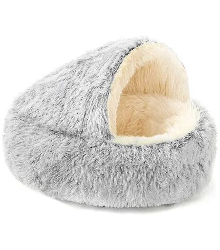 Maison D'hiver En Peluche Pour Chat,Coussin Rond Pour Chat,Panier Épais Et Chaud Pour Chat,Sac De Couchage Pour Animaux De Compagnie,Nid Pour Chaton,Chenil Pour Petits Chats.Grey Long Plush.40x40cm
