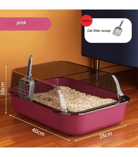 Bac À Litière Pour Chat,Toilettes Pour Chats,Grande Capacité,Plastique Ouvert,Anti-Éclaboussures,Bac À Sable,Nettoyage,Bassin De Bain,Fournitures Pour Animaux De Compagnie .Pink-M.
