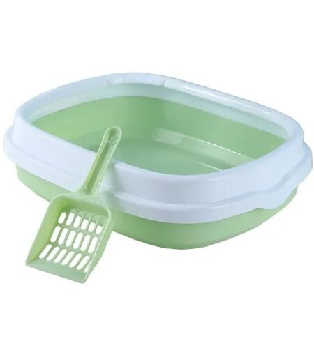 Bassin De Bain Anti-Éclaboussures Semi-Fermé Pour Animaux De Compagnie,Bac À Litière Pour Chat,Bassin De Toilette Pour Chat,Fournitures De Bac À Sable,Livres Pour Animaux De Co.Green.L 48x40x13cm