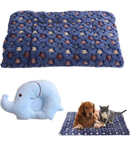 2 Pièces Bleu Coton Panier Kit,45 * 65cm Lavable En Machine Coussin Chien Avec Oreiller Éléphant Pour Petits Chiens Et Chats,Doux Tapis Pour Voyages Et Activités De Plein Air