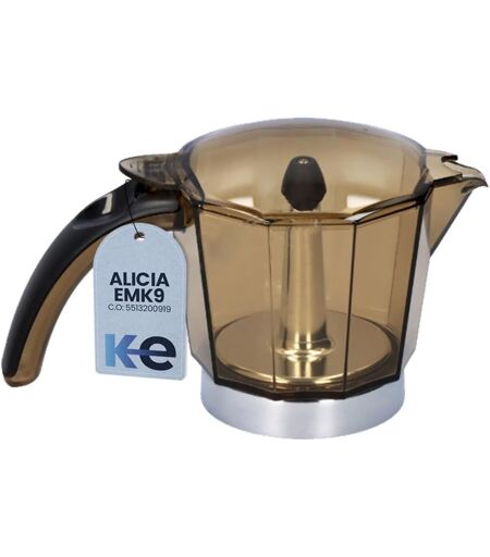 Réservoir de remplacement spécialement conçu pour redonner à votre cafetière Alicia sa fonctionnalité et son apparence dorigine. Idéal pour remplacer un réservoir cassé, usé ou perdu. IMPORTANT cette pièce de rechange ninclut pas le filtre ni le joint. Il est recommandé de conserver ces pièces du lot dorigine ou de les acheter séparément si nécessaire.PIÈCE DORIGINE Réservoir supérieur de la marque, fabriqué pour garantir la meilleure qualité, sécurité et durabilité. Conçu avec précision pour un ajustement parfait et des performances optimales dans votre cafetière.DIMENSIONS Hauteur imale (avec couvercle) 11,5 cm. Diamètre intérieur du filetage 8 cm. Diamètre extérieur du filetage 9 cm. Capacité 9 tasses.MATÉRIAUX DE HAUTE QUALITÉ Fabriqué avec les mêmes matériaux que la cafetière dorigine, garantissant durabilité, résistance à la chaleur et u prolongé sans détérioration.INSTALLATION FACILE ET SÉCURISÉE La pièce de rechange se visse facilement sur la base e de la cafetière, sans outil. Idéal pour remplacer un réservoir cassé ou usé.DESIGN TRANSPARENT ET FONCTIONNEL Réservoir transparent permettant de voir le niveau de café à tout moment. Couvercle rabattable avec poignée ergonomique facilitant le versement. Réservoir compatible uniquement avec le modèle Alicia EMK9. Non compatible avec le modèle EMKM9. Avant dacheter cette pièce de rechange, assurez-vous que votre cafetière est bien le modèle EMK9 de 9 tasses. Vérifiez le code situé à la base de lappareil il doit indiquer EMK9 (modèle Alicia). Non compatible avec les modèles EMKM (Alicia Plus) ou autres modèles similaires.Notre équipe technique est disponible pour répondre à toute question concernant le réservoir de la cafetière. Nhésitez pas à nous contacter, nous serons ravis de vous aider dans votre achat. Assistance personnalisée 100 % disponible par téléphone ou email..La livraison depuis la France est prévue dans 5 jours ouvrés, n'hésitez pas à passer votre commande ...