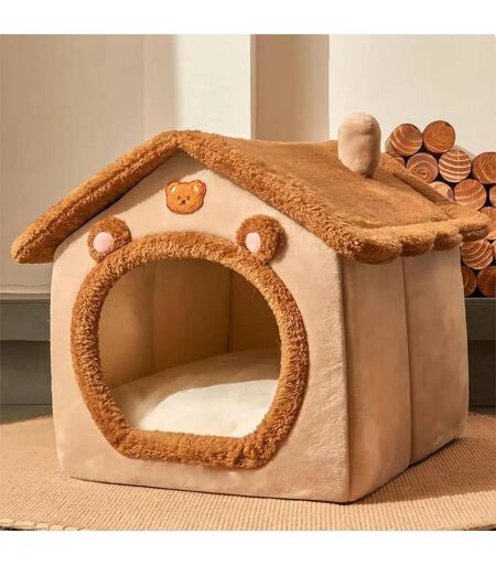 Maison Pliable Pour Animaux De Compagnie,Amovible Et Lavable,Grotte Pour Chiots,Canapé,Lit Pour Animaux De Compagnie,Pour Chiens Extra Petits Et Chats De Petite Et Moyenne Taille.Thé Brun.L