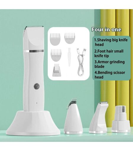 Specifications; Battery Included:Yes; Hign-concerned Chemical:None; Is Smart Device:No; Power Source:Rechargeable Battery; Type:Dogs; Item Type:Dog Hair Trimmer; Product Safety Information/Warning:TO AVOID DANGER OF SUFFOCATION, KEEP THIS PLASTIC BAG AWAY FROM BABIES AND CHILDREN. DO NOT USE THIS BAG IN CRIBS,BEDS,CARRIAGES OR PLAY PENS. THIS BAG IS NOT A TOY.; Features:; Knife head with waterproof rating of PX7, removable and washable, low-noise operation, type-c charging port, exquisite design for shaving the whole body and feet, multi-purpose for pets such as cats and dogs, and easy installation of detachable knife head; Product List:; 1. Host; 2. Large shaving blade head; 3. Foot hair blade; 4. Nail polisher; 5. Bending blade head; 6.9-12mm positioning comb; 7.3-6mm positioning comb; 8.2mm positioning comb; 9. Foot hair blade positioning comb; 10. Clean the brush; 11. USB data cable; 12. Charging socket; ..La livraison depuis la France est prévue dans 5 jours ouvrés, n'hésitez pas à passer votre commande ...