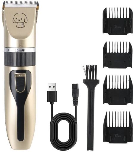 Specifications; Battery Included:Yes; Hign-concerned Chemical:None; Is Smart Device:No; Model Number:31018; Power Source:Rechargeable Battery; Type:Dogs; Item Type:Dog Hair Trimmer; Features:; Good quality, ceramic cutters, safe cutter head, it will do no harm to pets, durable and long-lasting.; USB rechargeable and small size, convenient to carry.; Professional lithium battery, long-lasting battery life.; The cutter head can be cleaned, Clean and hygienic.; Low noise design, pets are not afraid of haircuts.; LOW NOISE: Cat grooming clippers are low noise, quiet and comfortable. Curly hair, dense hair, long hair, fine hair, etc. can be cut.; 4 LENGTH LIMIT COMBS: 4 kinds of length limit comb, easy to trim. 0.8¿2mm / 0.03¿0.08in 5 position micro adjustable knife distance, novice can also easily get started.; AND NON INVASIVE: Electric pet hair clippers are designed with an R shaped sharp angle to fit the head line, and non invasive.; WIDE RANGE OF APPLICATION: Dog grooming clippers are suitable for a wide range of dogs, cats, rabbits and other types of pets.; Specification:; Item Name: Pet Grooming Hair Clipper Kit; Blade: Ceramic + Titanium; Color¿Gold; Battery Capacity: 600mAh; Charging method: USB charging; Battery Type: 18650 Lithium Battery; Comb attachment:3/6/9/12mm; Hair Clipper Size:As Picture; Is it electrified¿Yes; Notice:; Due to hand measure, the size may have slight error.; In order to use the product correctly, please read the instruction manual carefully before use.; The trademark on the retail box maybe different from the machine due to different production batches.; Package included:; 1 Pcs Pet Hair Clipper; ..La livraison depuis la France est prévue dans 5 jours ouvrés, n'hésitez pas à passer votre commande ...