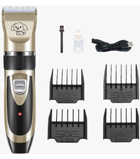 Specifications; Battery Included:Yes; Hign-concerned Chemical:None; Is Smart Device:No; Model Number:-; Power Source:Rechargeable Battery; Charging Time:3 Hour; Voltage:110-240V; Brand Name:VOFORD; Type:Dogs; Item Type:Dog Hair Trimmer; Power Source:Rechargeable Battery; Material:Plastic; Item Type:Hair Trimmer; Color:Black & Gold; Adapter Output:DC 5V 1000mAh; Adapter Input:AC 100-240V 50/60Hz; AC 100-240V 50/60Hz:Built-in Rechargeable 3.7V 2200mAh Li-ion Battery; Charging Time:appr. 3Hrs; Working Time:appr. 300Mins; Turbo Function:Support, 6000rpm/7000rpm; Comb Guide:3mm/6mm/9mm/12mm; Features 1:Little noise,overcharge protection; Features 2:Clipper with Spare Blade; Dog Clippers Low-noise Pet Grooming Tool Cat Animal Hair Cutter Trimmer Haircut Shave perros y gatos de pelo maquina afeitadora; Product Name: Pet Hair Clipper; Plastic Color: Gold; Material: anti-wear brass; Nail clipper dimensions: 175x42mm (length x width); Operating voltage: 3.7V; Charging time: Around 3hrs; Running time: 120minutes; Adapter output: AC 3V 1000mA; Adapter input: 110V-240V 50 / 60Hz; Comb: 3mm to 6mm 9mm 12mm comb; Features¿; -Professional and powerful motor (the shaft is made of fine copper), easily trim pet hair without getting stuck, not hurt the skin of dogs or cats, will not rust and durable.; -Precision motor, low vibration and ultra-quiet design, about 60 db, as if listening to a music box. -Low vibration and low noise motors make them more relaxed and reduce their fear of noise.; -The 5-speed fine-tuning of the blade makes it easier to shave short hair for pets. -Lightweight and wireless design makes it simpler and easier to use. -Charging for five hours, can last for 60 minutes; -Adjustable trimming combs are suitable for cutting hair of various lengths; removable guide combs make changing combs easy and quick, and increase versatility.; -Streamlined non-slip body design according to ergonomics.; -The LED light indicates the working state, and has overcharge protection to improve the safety of use.; -The adjustable trimming comb is suitable for trimming hair of various lengths; the movable guide comb makes it easy and quick to change the comb, increasing its versatility.; ..La livraison depuis la France est prévue dans 5 jours ouvrés, n'hésitez pas à passer votre commande ...
