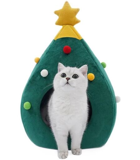 Nid En Peluche Chaud Et Confortable Pour Chat Et Chien,Lit Pour Animal De Compagnie Teddy,Forme De Lit De Diversification,Poignées De Accent D'arbre,Fournitures Pour Animaux De Com.Green.40x40x48cm