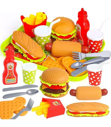 Set de Jeuet Hambourg 2 tasses à boisson + 1 hot-dog + 1 frites + 1 sandwich en forme de c?ur + 1 boîte dépices rouges + 1 couteau / fourchette / cuillère + 1 hamburger long + 1 assiette verte + 1 hamburger rondDémonter Les Jouets Nos jouets burger et hot-dog sont tous démontables et bien faits pour donner aux enfants des heures de jeu imaginatif et créatif.Aliments Colorés Nos jouets alimentaires de cuisine sont colorés et réalistes, ce qui peut attirer lattention des enfants, approfondir rapidement leur compréhension des ingrédients et apprendre un nouveau vocabulaire.Jeux de Puzzle Grâce à des jouets de simulation de cuisine amusants, vous pouvez rapidement développer les compétences sociales et de communication des enfants, augmenter linteraction avec les autres et apporter une expérience de jeu parfaite.Cadeau Mignon Il sagit dun ensemble de jeuet de cuisine pour enfants de haute qualité qui est parfait pour les cadeaux danniversaire et de vacances pour les enfants âgés de 3 ans et plus..La livraison depuis la France est prévue dans 5 jours ouvrés, n'hésitez pas à passer votre commande ...