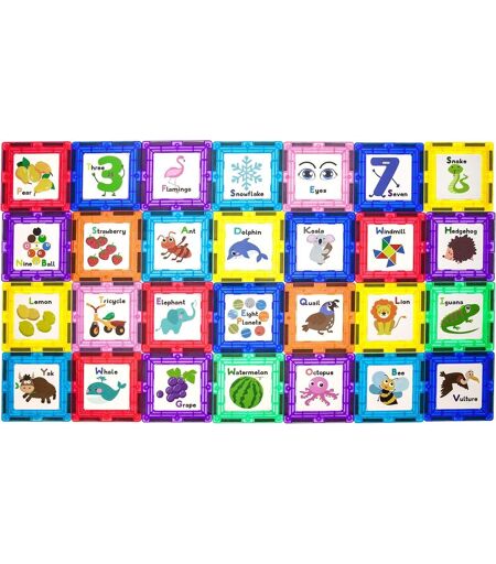 Pt56 Kit De Construction Magnétique Avec Tuiles Et Graphiques Pédagogiques À Clipser,Kit D'Apprentissage Stem,Pour Le Développement Du Cerveau Des Enfants
