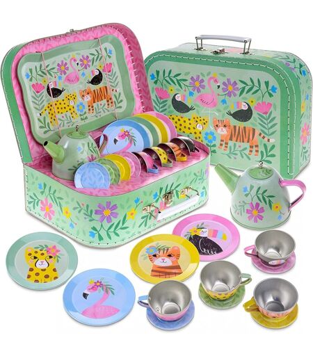 Service À Thé Pour Enfants,Dînette Et Son Coffret Jouet,15 Pièces-Modèle Safari