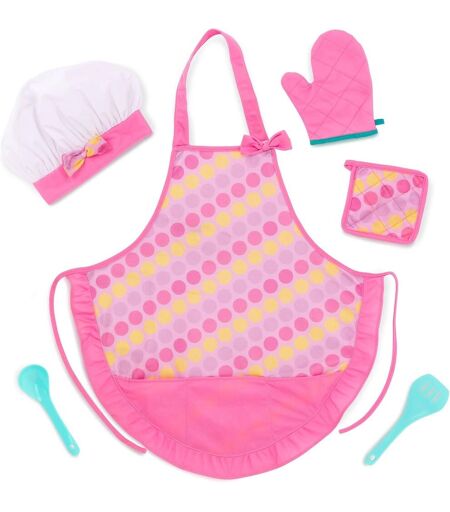 Chef's Outfit & Baking Set chefs outfit and baking accessories sized perfectly for small hands and bigger imaginations!Easy to Play adjustable chefs hat comfortably fits toddlers, and the colorful apron has front pockets to hold your magical ingredients; perfect for playing house and dress-up, the easy-to-grab kitchen tools work great with a variety of toy food sets.Includes apron with cute ruffles, chefs hat with bow, pretend oven mitt, pretend pot holder, spatula, and spoon.Recommended Age suggested for ages 3 and up (small parts); teaches coordination, develops fine motor and social skills, and encourages creativity.Safety Tested all Play Circle products meet or exceed US and CAN safety standards; for pretend play only. Do Not Use Oven Mitt or Pot Holder In Real Oven.AttentionContient un jouet. La surveillance d'un adulte est recommandéeAttentionÀ utiliser sous la surveillance dun adulte.La livraison depuis la France est prévue dans 5 jours ouvrés, n'hésitez pas à passer votre commande ...