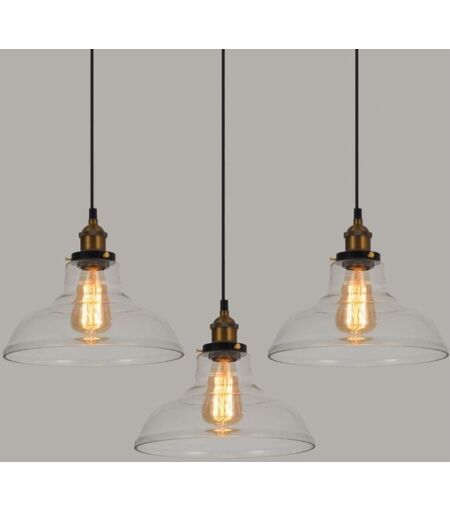 WOTTES Suspension Luminaire Industrielle Moderne Plafonniers Lustre Verre Métal Lampe Suspensions Réglable Ø20CM - 3Pcs