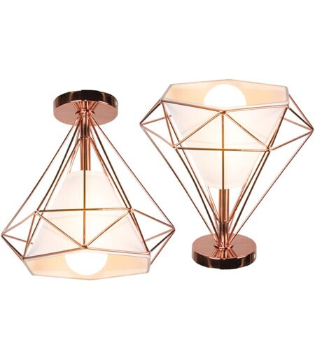 WOTTES E27 Plafonnier Moderne Lampe de Plafond Abat-jour Diamant en Métal Tissu Suspension Luminaire Créatif Ø25CM Rose Doré - 2Pcs
