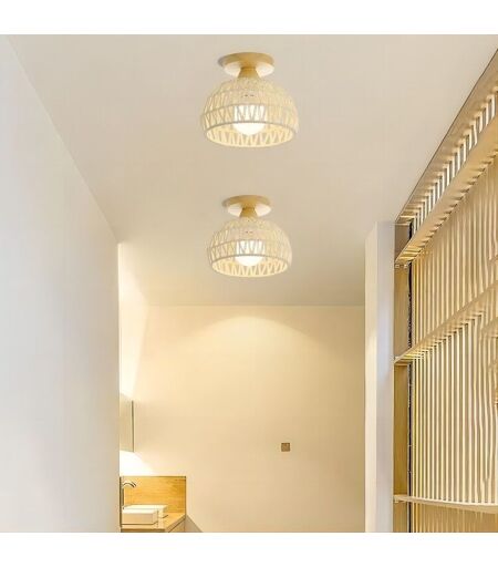 WOTTES E27 Plafonnier Vintage Lampe de Plafond Bois Corde de Chanvre Suspension Luminaire Intérieur Couleur Blanc Ø20CM - 2Pcs