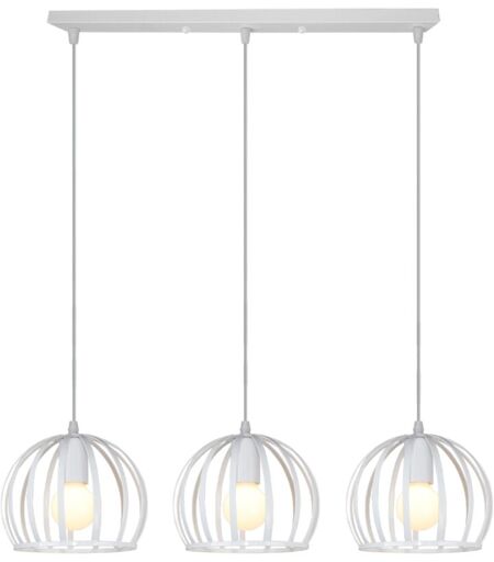 Wottes - Lustre Suspension Cage Métal 3 Lampes Moderne Industriel Plafonnier E27 pour Chambre Salle à Manger Cuisine Blanc