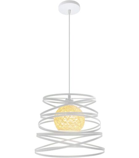 WOTTES Lustre Suspension Moderne Lampe à Suspension Créatif Luminaire Plafonnier Abat-jour Métal E27 Ø30CM Blanc - 1Pcs