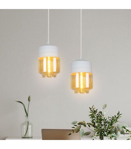 WOTTES Suspension Luminaire Vintage Industriel Lustre Suspension Abat-jour en Verre Lustre Plafonnier Blanc et Ambre E27 Ø18CM - 2Pcs