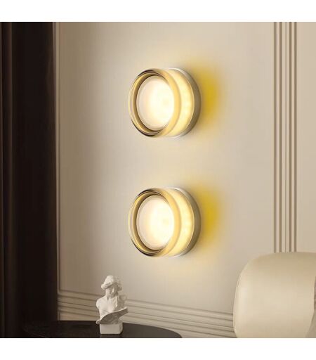 Couleur : Gris Fumé Taille : Ø13,5*7,5 cm (taille spécifique comme indiqué sur l'image) Couleur de la source lumineuse : lumière blanche chaude (5 W) Contenu du colis : 2 appliques murales Aluminium La base de l'applique murale est en aluminium brossé de haute qualité, avec une texture de surface fine et résistante à l'usure. La texture métallique est de haute qualité et ne laisse pas d'empreintes digitales, s'adaptant parfaitement au style minimaliste moderne. Optique L'abat-jour de la lampe murale est fabriqué en matériau acrylique de qualité optique professionnel, qui transmet la lumière uniformément et doucement, réduit efficacement l'éblouissement et diffuse la lumière de manière plus naturelle et confortable. Minimalisme Ce petit luminaire rond et raffiné, d'un diamètre de seulement 13,5 cm, se fixe au mur à seulement 8 cm de distance. Compact et élégant, il embellit le mur avec élégance. Léger et suspendu, il renforce l'impression de superposition spatiale. Lumière blanche ...
