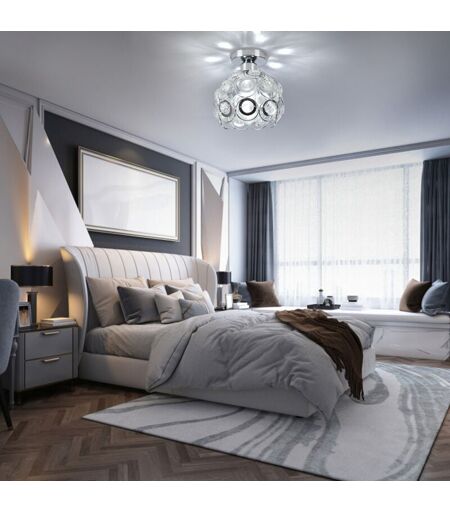 WOTTES Plafonnier Moderne E27 Luminaire Suspension Abat-Jour en Cristal Lampe de Plafond Intérieur Argenté Ø20CM