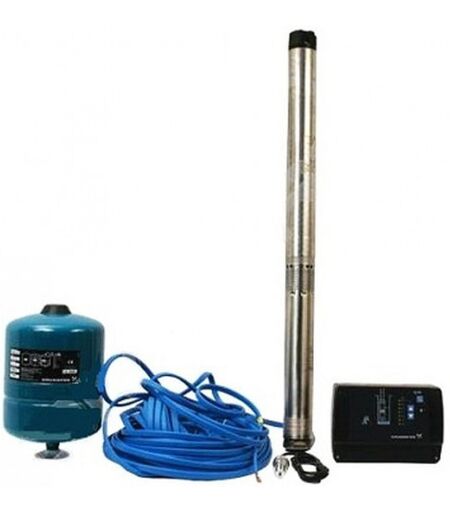 L’ensemble SQE SYSTEM est suffisamment compact et souple pour etre installé meme dans des espaces réduits. Le moteur a aimant permanent et son systeme de démarrage progressif permettent de conserver, pendant des années, un systeme fiable d’alimentation en eau. Utilisations : - pour l'adduction d’eau dans l'habitat. - pour le pompage en forage 3". - pour l'arrosage et le lavage. - pour l'alimentation pompe a chaleur eau/eau. - La pompe peut se loger dans une chemise de refroidissement ( montage horizontal), pour le pompage en réservoir, cuve, citerne eaux de pluie. Caractéristiques pompe : - Enveloppe et arbre en acier inoxydable. - Moteur a aimant permanent. - Concept de roues flottantes. - Clapet anti-retour avec ressort incorporé. Caractéristiques coffret commande et variation CU 301 : - Il maintient ou modifie les parametres de l’installation a la demande. - Niveau de pression constante souhaité ajustable de 2 a 5 bar. - Signalisation en cas de marche a sec ou autres anomalies. - Le capteur de pression se raccorde sur la tuyauterie, il permet d’ajuster en permanence la pression en envoyant des signaux a l’unité de contrôle CU 301. Protections intégrées : Manque d’eau (marche a sec) ; Surchauffe, surcharge moteur ; Sous-tension et surtension. Compsition du kit SQE System : - 1 Pompe immergée SQE 3-65 - 1 Coffret de contrôle et de commande vitesse variable CU 301. - 1 Capteur de pression avec son câble. - 1 Réservoir a vessie de 8L. - 1 Manometre - 1 Clapet a boule. - 40 m de câble (connecté a la pompe). - Tension d'alimenation: 230V / 50Hz - Puissance moteur (Kw) 1.05 - Intensité nominale (A): 6.6 - Pression constante ajustable (bar): 2 a 5 - Débit maxi (m3/h): 4 - HMT (m CE): 92 - Pression max (bar): 9 - Diametre mini Forage (mm):76 - Sortie Refoulement taraudée: 1" 1/4 F - Température du liquide: + 2° C a + 30° C - Liquides pompés: pH 5 a 9. - Quantité de sable : 50 g/m3 maxi - Poids de l'ensemble (Kg): 31 Photo d'illustration > ...