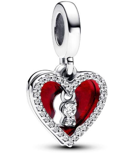 Pandora Charm Pendant Double C?ur Rouge et Serrure female
