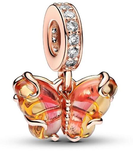 Pandora Charm Pendant Papillon Murano Rose et Jaune female