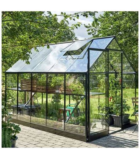 Halls - Serre en verre trempé Qube 610 avec base - 6.40 m², Couleur Noir
