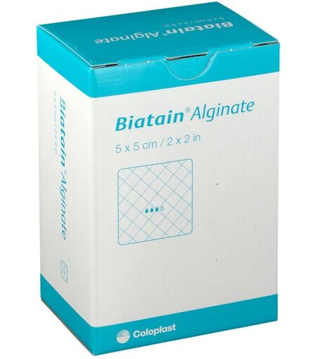 Taille du pansement:5 cm x 5 cm Indication:Biatain® Alginate est un pansement à l’alginate hautement absorbant pour les plaies avec exsudation modérée à forte, peu importe leur taille, leur forme ou leur profondeur. Biatain® Alginate a une absorption supérieure comparativement à d'autres pansements d'alginate et aux hydrofibres. Description du produitRecommandé pour le remplissage des cavitésGrâce à sa conception et à son intégrité structurelle, il est possible de découper ce pansement pour l’adapter aux plaies, peu importe leur taille, leur forme ou leur profondeur. Le pansement adhère au lit de la plaie, ce qui est primordial dans le cadre du processus de guérison. Pansement à l’intégrité supérieureCe pansement à l’intégrité supérieure peut être retiré en une seule fois avec un minimum de douleur et de traumatismes. Risque minimal de fuite et de macérationLa capacité d'absorption supérieure de Biatain® Alginate et la formation d'un gel, qui emprisonne l'exsudat à l'intérieur du pansement, préviennent les fuites susceptibles d’endommager la peau autour de la plaie. Effet hémostatique documentéContrairement aux pansements aux hydrofibres, Biatain® Alginate a un effet hémostatique, c'est-à-dire qu'il a la capacité d'interrompre l'écoulement sanguin des blessures mineures en libérant des ions de calcium. Mode d’actionAu contact avec l'exsudat de la blessure, Biatain® Alginate forme un gel cohésif et doux maintenant un milieu humide optimal pour assurer la cicatrisation de la plaie . Conseils d'utilisation:L'alginate Biatain ® peut être utilisé sur toutes les plaies, de moyennes à fortes, partiellement ou en pleine force. Les alginates Biatain ® peuvent contribuer à soutenir le contrôle des mineurs dans les plaies hémorragiques superficielles. Les alginates Biatain ® peuvent être utilisés avec la thérapie de compression. L'alginate Biatain ® ne doit pas être utilisé sur des plaies sèches ou légèrement exsudatives ou pour contrôler un saignement important. L'alginate Biatain ® est utilisé pour le décubitus, les ulcères de jambe, les ulcères artériels, le syndrome du pied diabétique, les sites donneurs ou les blessures traumatiques. Composition:Biatain® Alginate : un pansement d'alginate composé de 85% d'alginate et de 15% de carboxyméthylcellulose (CMC). Conditionnement:30 pansements ...