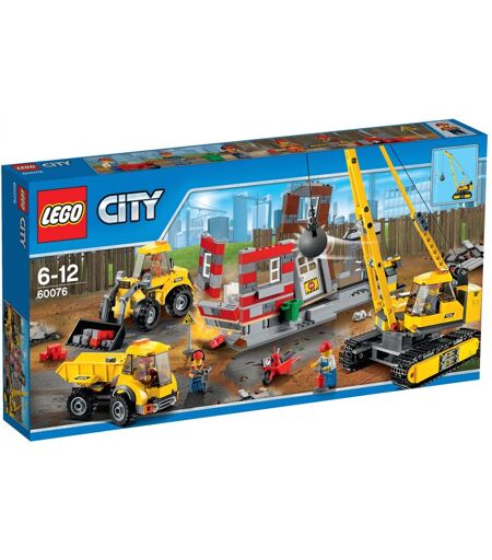 Fais appel au gros bulldozer de démolition ! Un gros chantier se prépare ! Les experts en démolition utilisent toutes leurs grosses machines pour démolir une rangée de maisons en ruines et ils ont besoin de ton aide. Saute à bord de la grue géante et actionne le levier pour faire balancer la boule de démolition ! Aide l'expert en démolition à poser la dynamite et à appuyer sur la poignée du détonateur...boum ! Utilise la puissante pelleteuse pour tirer sur la chaîne de démolition...paf ! Lorsque la poussière se dissipe, vide les gravats dans le gros camion. Voici une équipe de démolition redoutable ! Comprend 5 figurines d'ouvrier de démolition avec des accessoires assortis. - Comprend une grue avec un levier mobile et une boule de démolition, une pelleteuse avec une pelle mobile, un camion-benne avec un plateau qui bascule et 3 sections de chantier comprenant diverses fonctions de démolition - Fonctions de la section de chantier : section de démolition, section à abattre et section d'explosion - Les accessoires incluent un marteau-piqueur, un pic, une scie, une pelle, 2 bâtons de dynamite, un panneau, une brouette, une poubelle, des toilettes, un rat et des protège-oreilles - Rejoins l'équipe de démolition ! - Fais fonctionner la puissante pelleteuse - Fais balancer la redoutable boule de destruction ! - La grue mesure plus de 29 cm de haut, 21 cm de long et 11 cm de large - La pelleteuse mesure plus de 9 cm de haut, 19 cm de long et 7 cm de large - Le camion-benne mesure plus de 7 cm de haut, 13 cm de long et 6 cm de large Minifigurines : - cinq ouvriers de démolition (CTY527, CTY528, CTY530, CTY540 et CTY555) ...