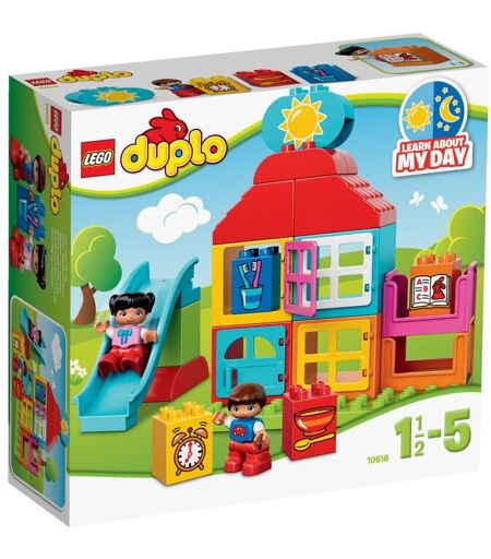 Apprends les tâches quotidiennes avec cet ensemble facile à construire ! Joue et apprends avec Ma première maison LEGO DUPLO ! Combine les grosses pièces pour construire la maison, une introduction parfaite aux compétences de construction de base. Les briques spécialement décorées montrant des parties essentielles de la vie quotidienne, fournissent des sujets de conversation pour vous et votre petit enfant afin que vous puissiez lui apprendre des choses sur sa journée. La brique nuit/jour aide à construire la scène pour l'apprentissage et le jeu de rôle. Commence tes histoires avec cet ensemble facile à construire et aide les 2 figurines LEGO DUPLO à se lever le matin, à prendre leur petit déjeuner, à se brosser les dents, et à s'amuser sur le toboggan avant de les mettre au lit. Les briques LEGO DUPLO ont des couleurs vives et sont spécialement conçues pour être sûres et adaptées aux petites mains. Inclut 2 figurines d'enfant LEGO DUPLO. - Comprend une maison facile à construire avec des portes, une fenêtre qui s'ouvre et un toboggan amusant - Inclut une brique jour/nuit à tourner pour commencer le décor, et 4 briques décorées de couleurs vives avec des moments clés dans la vie quotidienne - Une introduction idéale aux premières compétences de construction - Apprenez à votre enfant les événements de sa journée en rejouant la vie quotidienne à la maison - Créez des scénarios de jeuxde rôle amusants avec les figurines LEGO DUPLO - Les produits LEGO DUPLO sont amusants et sûrs pour les jeunes enfants - La maison mesure plus de 22 cm de haut, 19 cm de large et 9 cm de profondeur - Le toboggan mesure plus de 9 cm de haut, 4 cm de large et 13 cm de profondeur Figurines Duplo : - Garçon (47205PB031) - Fille (47205PB032) ...
