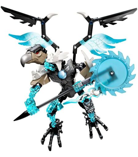 CHI-up ! Construis le suprême Vardy et rejoins un combat d'une autre dimension ! Plonge depuis le ciel pour attaquer les tribus ennemies avec CHI Vardy ! Ce guerrier à la puissance CHI à construire est prêt pour le combat avec ses grandes ailes, son armure de jambe décorée et ses pieds aux griffes acérées. Protège la précieuse sphère de CHI située dans l'armure sur la poitrine du chef glacé de la tribu Vautour. Place ses membres super flexible dans des poses de combat redoutables et fais tourner la lame de scie rotative en glace transparente pour envoyer tes rivaux se précipiter pour se mettre à l'abri ! - Comprend une tête de vautour, une lame scie rotative à construire, des ailes, une armure de poitrine avec une fonction de jeu CHI, des os de glace transparents, une armure de jambe décorée, des pieds à griffes et des articulations mobiles - Vole dans le combat avec le chef ailé de la tribu Vautour - Fais bouger les membres super souples de CHI Vardy pour créer des poses de combat féroces ! - Fais tourner la lame scie de glace - Fais sortir le CHI de l'armure de poitrine - Combat contre CHI Laval (70206) - À combiner avec CHI Sir Fangar (70212) en utilisant les instructions de montage disponibles sur LEGO.fr\Chima\BI pour créer une figurine de CHI Vardy surpuissante - Mesure plus de 19 cm de haut ! ...