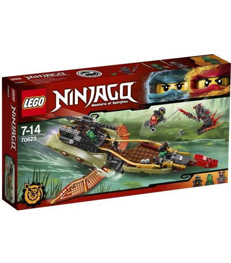 La lutte contre les Vermillion pour obtenir le contrôle de la Lame de pause du Temps continue avec Lloyd et Cole à bord du vaisseau de la Poursuite en vol. Ce bateau/planeur convertible est doté d'ailes qui se déploient pour le mode vol et de deux fusils à petites briques, plus deux canoés détachables avec deux pagaies. L'aéro-planche en forme de V de Vermine et la hache Vermillion permettent de créer plus d'action entre les ninjas et les guerriers Vermillion.. . - Inclut trois figurines : Vermin, Lloyd et Cole avec pour chacun une tenue des marais.. - La poursuite en vol comprend un cockpit pour deux figurines, deux fusils à petites briques, des ailes qui se déploient pour le mode vol et un détail de lame de ninja, plus deux canoës détachables et deux pagaies.. - Les ailes se déploient pour transformer le vaisseau de bateau à planeur !. - Le canoë se détache pour mener des missions furtives dans le marais.. - Vermin est équipé d'une aéro-planche en forme de V.. - Inclut la Lame rouge transparent de pause du Temps.. - Les armes incluent les katanas de Lloyd et Cole et la hache Vermillion de Vermin.. - Les accessoires incluent la boussole de Lloyd et le casque Vermillion de Vermin.. - Les fans pourront recréer et rejouer des scènes célèbres de la série animée NINJAGO Maîtres du Spinjitzu.. - Cet ensemble offre une expérience de construction adaptée aux enfants à partir de 7 ans.. - Le vaisseau des ninjas mesure plus de 8 cm de haut, 30 cm de long et 10 cm de large en mode bateau et 23 cm de large en mode planeur.. - L'aéro-planche Vermillion mesure plus de 6 cm de long, 6 cm de large et moins de 1cm de haut.. . 360 pièces. 3 minifigurines ...