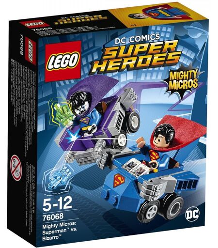 Superman et Bizarro s'affrontent dans cet ensemble Mighty Micros amusant. Chaque véhicule est adapté à ces figurines à courtes jambes et comprend un siège sur le dessus et de gros poings à l'avant qui sont idéaux pour un combat amusant et rapide. Chaque personnage est doté de son propre accessoire de Kryptonite.. . - Inclut deux figurines avec des mini jambes : Superman et Bizarro.. - La voiture Mighty Micros de Superman comprend une cabine pour figurine, le logo de Superman et des poings géants.. - La construction de la voiture Mighty Micros de Bizarro comprend aussi des poings géants.. - Conduis Bizarro à l'envers dans son véhicule construit à l'envers et lance sa Kryptonite dans la mauvaise direction !. - Les accessoires incluent la Kryptonite bleu transparent de Superman et la Kryptonite vert transparent de Bizarro.. - Cet ensemble offre une expérience de construction et de jeu adaptée aux enfants de 5 à 12 ans.. - La voiture Mighty Micros de Superman mesure plus de 4 cm de haut, 6 cm de long et 5 cm de large.. - La voiture Mighty Micros de Bizarro mesure plus de 4 cm de haut, 6 cm de long et 5 cm de large.. . 93 pièces. 2 minifigurines ...