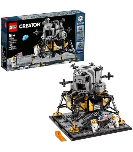 Le module lunaire de la mission Apollo 11 de la NASA rend hommage à l'exploration spatiale ! Célébrez le premier alunissage de l'homme avec cet ensemble de collection NASA Apollo 11 Lunar Lander LEGO Icons (10266), développé en coopération avec la NASA pour marquer le 50e anniversaire d'un événement historique qui a captivé le monde. Ce modèle de collection comprend une réplique hautement détaillée du module lunaire Eagle d'Apollo 11, ainsi qu'une représentation de la surface lunaire, avec un cratère, des empreintes de pas et un drapeau américain. L'étage de descente est doté de patins et de panneaux d'atterrissage de couleur dorée, de trappes d'ouverture pour la caméra et le laser, et d'une échelle, tandis que l'étage d'ascension possède un intérieur détaillé pouvant accueillir 2 astronautes. L'ensemble de construction modulaire est terminé par une plaque d'identification de l'Apollo 11 Lunar Lander. Ce modèle d'exposition constitue une superbe pièce maîtresse pour la maison ou le bureau et offre une expérience de construction stimulante et gratifiante, pleine de nostalgie. Comprend une réplique détaillée de l'atterrisseur lunaire Eagle avec une représentation de la surface lunaire, avec un cratère, des empreintes de pas et un drapeau américain Ce modèle modulaire comprend un étage de descente avec des patins d'atterrissage et des panneaux de couleur dorée, une caméra qui s'ouvre, des trappes laser et une échelle mobile L'étage d'ascension a un intérieur détaillé avec de la place pour 2 astronautes. Le modèle est fini avec une plaque d'identification Apollo 11 Lunar Lander Cet ensemble de construction de collection plein de nostalgie comprend 2 Minifigurines d'astronautes avec décoration de la NASA et casques dorés Ce modèle d'exposition constitue une superbe pièce maîtresse pour la maison ou le bureau et offre une expérience de construction stimulante et enrichissante La maquette de la NASA Apollo 11 Lunar Lander mesure plus de 20 cm de haut, 22 cm de large et 20 cm de profondeur Attention ! Danger d'étouffement. Petits éléments. Ne convient pas aux enfants de moins de 36 mois. ...