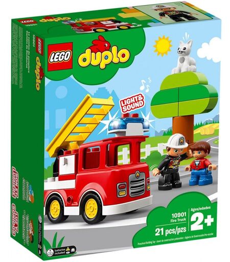 Un moyen d'aider les tout-petits à porter secours grâce au camion de pompiers facile à construire avec des lumières et des sons ! Rejouez des scènes de la vie réelle dans la ville LEGO DUPLO : un monde reconnaissable avec des figurines DUPLO modernes. Aidez votre petit pompier à porter secours avec le camion de pompiers 10901 incluant une lumière bleue clignotante et une sirène ! Ce camion de pompiers est facile à construire avec un tiroir qui s'ouvre et une échelle. Les tout-petits vont adorer aider le pompier à sauver le chat dans l'arbre! Comprend 2 figurines DUPLO et une figurine de chat. - Inclut 2 figurines LEGO DUPLO : un pompier, un enfant et une figurine de chat. - Comprend un camion de pompiers pour enfants avec une lumière clignotante et une sirène sonore, une échelle inclinable et un tiroir qui s'ouvre, ainsi qu'un arbre à construire. - Possibilité d'appuyer sur le bouton pour activer les lumières et les sons et ainsi porter secours dans ce camion de pompiers rouge pour les tout-petits ! - Il faut aider le courageux pompier à monter à l'échelle pour sauver le chat dans l'arbre. - Des personnages modernes pour s'amuser en faisant des jeux de rôle de sauvetage et en célébrant les héros de la vie réelle. - Permet d'aider votre enfant à maîtriser des compétences de construction de base avec ce modèle facile à construire. - Ce jouet de pompiers est un cadeau idéal pour les enfants en âge préscolaire. - Les produits LEGO DUPLO sont amusants et sûrs pour les jeunes enfants. - Il y a plusieurs produits de la ville LEGO DUPLO à collectionner pour recréer la vie quotidienne de son enfant dans un univers DUPLO familier. - À combiner avec la caserne des pompiers 10903 pour encore plus de plaisir sur le thème des pompiers. - Le camion des pompiers mesure plus de 10 cm de haut, 14 cm de long et 7 cm de large. ...