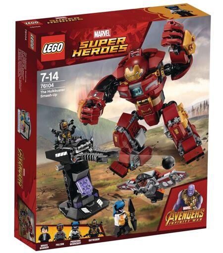 La destruction de la tourelle à fusil par le Hulkbuster ! Le robot Hulkbuster de Bruce Banner extermine Proxima Midnight et l'Outrider dans cet ensemble LEGO Marvel Super Heroes 76104 Le combat de Hulkbuster. Le Hulkbuster articulé est doté d'un cockpit qui s'ouvre pour accueillir une figurine et d'une fonction de bras foudroyant. Cet ensemble d'action inclut également une tourelle à fusil munie d'un compartiment qui s'ouvre à l'arrière et qui contient un élément représentant la Gemme de l'infini, les ailes à construire du Faucon ainsi qu'un drone Redwing amovible et 4 figurines. - Inclut 4 figurines : Bruce Banner, le Faucon, Proxima Midnight et un Outrider. - Le robot Hulkbuster est doté d'un cockpit qui s'ouvre pour accueillir une figurine, d'un bras foudroyant actionné par une roue, de doigts, de bras et de jambes articulés. - La tourelle à fusil est munie d'un siège pouvant accueillir une figurine, d'un fusil et d'un compartiment qui s'ouvre à l'arrière et qui contient un élément représentant la Gemme de l'infini. - Inclut la lance de Proxima Midnight et les ailes à construire du Faucon, comprenant un drone Redwing amovible. - La figurine d'Outrider (nouveauté de mars 2018) a 6 bras. - Cet ensemble recrée les scènes palpitantes inspirées du film de super-héros de Marvel Avengers: Infinity War. - Le Hulkbuster mesure plus de 14 cm de haut, 7 cm de long et 16 cm de large. - La tourelle à fusil mesure plus de 8 cm de haut, 11 cm de large et 5 cm de profondeur. ...