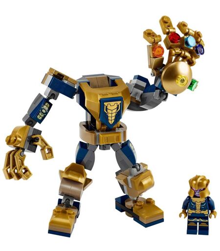Les fans de super-héros s'amusent et vivent des aventures pleines d'action avec le robot de Thanos articulé LEGO Marvel Avengers (76141). Lorsque les enfants placent la figurine de Thanos dans le robot à construire, le super-vilain devient plus fou et plus implacable que jamais ! De l'action passionnante avec une figurine LEGO de Thanos Les fans de super-héros vont adorer ce robot de Thanos débordant d'action. Les enfants peuvent ouvrir le cockpit de la méga machine et placer la figurine du pilote Thanos à l'intérieur. Les bras et les jambes articulés permettent une mobilité totale et, comme ce super-vilain mécanique Marvel Avengers dispose du redoutable Gant de l'infini avec ses 6 Gemmes de l'infini, il est désormais équipé pour détruire la moitié des êtres vivants de l'univers ! Pour s'amuser encore plus à construire, l'appli interactive LEGO Life peut être téléchargée gratuitement. L'univers de Marvel Avengers avec des jouets LEGO à construire Les jouets de construction LEGO Marvel Avengers transportent les enfants dans un univers palpitant de jeu de rôle imaginatif. Avec des véhicules, des robots, des constructions, des figurines, des armes et des gadgets impressionnants, les jeunes super-héros peuvent recréer leurs scènes de films préférées et inventer leurs propres aventures. - L'action Marvel Avengers est entre les mains des jeunes super-héros avec Thanos et son gigantesque robot ! Les enfants peuvent placer la figurine de Thanos à l'intérieur de sa gigantesque machine articulée pour que le super-vilain devienne encore plus impitoyable ! - Le robot de Thanos est une version plus grande de Thanos il possède une cuirasse distinctive. Il est fourni avec le puissant Gant de l'infini, 6 Gemmes de l'infini et une figurine de Thanos en pilote (nouveauté de janvier 2020). - Les enfants peuvent placer la figurine de Thanos dans le cockpit du robot. Le puissant robot, aux bras et aux jambes articulés, se prépare à anéantir l'univers... ou à prendre la pose dans la chambre d'un jeune super-héros ! - Ce jouet LEGO à construire propose aux fans de Marvel Avengers de vivre des aventures de super-héros infinies sous forme de jeu de rôle avec le fascinant robot et la figurine de Thanos. Un formidable cadeau pour les enfants de 6 ans et plus. - Le robot de Thanos, qui mesure plus de 11 cm de haut, 13 cm de large et 6 cm de profondeur, garantit de l'action Marvel Avengers à grande échelle, que ce soit lors de ses aventures avec d'autres super-héros ou lorsqu'il détruit l'univers sans aucune aide ! - Pas besoin de piles pour ce set de jeu Marvel Avengers sur le thème de Thanos. Les enfants vont adorer le manipuler partout et à toute heure, et à développer leur esprit créatif et leur capacité à résoudre des problèmes tout en jouant. - Grâce à Instructions PLUS, même les jeunes enfants peuvent assembler seuls ce jouet à construire. Ce guide interactif et amusant inclut des fonctions de zoom et de rotation il est disponible avec l'appli gratuite LEGO Life pour... ...