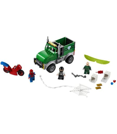 Les petits super-héros passent à l'action avec Spider-Man pour attraper le Vautour au moment où ce méchant ailé descend en piqué, fait exploser le fourgon blindé et vole les bijoux ! Une excellente façon d'initier les enfants d'âge préscolaire à la construction LEGO. Jouet d'action amusant à construire, avec véhicules et figurines Ce set de jeu Spider-Man inclut 3 figurines LEGO (Spider-Man, le Vautour et une conductrice), une fabuleuse moto et un fourgon blindé. L'arrière du fourgon "explose" pour révéler des coffres remplis de bijoux. Et pour un look sportif, les enfants peuvent retirer le moteur et le placer sur le capot du fourgon. Les instructions simples permettent aux enfants de construire en toute confiance grâce à des explications détaillées. Et pour s'amuser encore plus, l'appli de construction interactive LEGO Life, qui inclut des fonctions de zoom et de rotation, peut être téléchargée gratuitement. Sets de jeu amusants sur le thème des super-héros Avec une fantastique gamme de véhicules, de robots, de bâtiments, de figurines, d'armes et de gadgets, les jouets de construction LEGO Marvel Spider-Man permettent aux petits super-héros de recréer leurs scènes de films préférées et d'imaginer leurs propres histoires sous forme de jeu de rôle. - Ce set de démarrage LEGO pour jeunes constructeurs déborde d'action, de passion et de personnages familiers. C'est un excellent moyen d'initier les enfants aux sets de jeu LEGO et aux aventures des super-héros des films Marvel Spider-Man. - Ce jouet très amusant inclut les figurines LEGO de Spider-Man, du Vautour et d'une conductrice, ainsi que la moto de Spider-Man, un fourgon blindé dont l'arrière « explose » et un moteur pouvant être installé sur le capot. - Avec un super-héros à moto,un super méchant ailé et un fourgon blindé plein de bijoux, le décor est planté pour des heures de jeu riche en action ! Et lorsque l'action est terminée, les personnages constituent de formidables objets à exposer dans une chambre d'enfant. - Ce jouet de construction LEGO Marvel Spider-Man propose des défis de construction et des possibilités de jeu à plusieurs parfaitement adaptés aux garçons et aux filles de 4 ans et plus. Un jouet LEGO populaire à construire et à offrir aux enfants, pour Noël ou un anniversaire. - Avec le fourgon blindé qui mesure plus de 15 cm de long et 9 cm de haut, ainsi que les figurines de Spider-Man et du Vautour, ce set encourage le jeu d'imagination à grande échelle. À combiner avec d'autres jouets pour s'amuser encore plus avec les super-héros. - Pas besoin de piles pour ce set de jeu sur le thème des super-héros. Le pouvoir est entre les mains des enfants ! Les jouets de construction LEGO sans piles encouragent l'esprit créatif, le jeu de rôle imaginatif et l'aptitude à résoudre des problèmes. - Grâce à Instructions PLUS, même les jeunes enfants peuvent construire seuls ce set de jeu Spider-Man. Ce guide interactif gratuit, qui inclut des fonctions de zoom et de rotation, est... ...