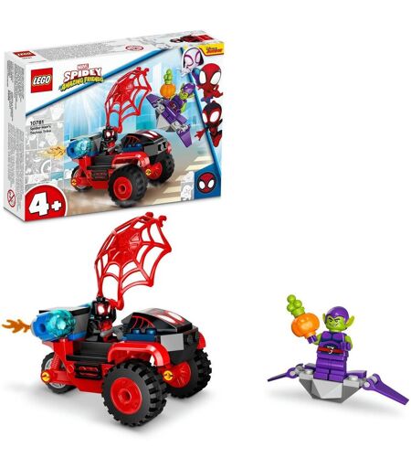 Offrez des heures de jeu à vos lanceurs de toiles avec ces véhicules Spider-Man LEGO Marvel. Petit cadeau idéal pour les fans de Spider-Man de 4 ans et plus, le set Miles Morales : Le techno-trike de Spider-Man (10781) est source de jeux imaginatifs. Aux côtés de Miles Morales, les fans de Marvel se lancent dans des poursuites haletantes, rattrapent le Bouffon Vert et font atterrir son planeur d'un jet de toile parfaitement ciblé. Des constructions simples pour les petits fans de Spidey Les sets LEGO 4+ intègrent des fonctions qui rendent l'expérience de jeu des enfants encore plus amusante, ainsi qu'une brique de démarrage qui constitue une base de construction solide pour plonger encore plus vite dans l'univers des super-héros. Des jeux en famille Les sets 4+ offrent aux adultes le moyen idéal de partager les joies de la construction LEGO avec les enfants. Les instructions illustrées facilitent l'assemblage, même pour les lecteurs débutants. - Un cadeau amusant pour toutes les occasions ? Offrez aux petits super-héros de 4 ans et plus le set Miles Morales : Le techno-trike de Spider-Man LEGO Marvel (10781) inspiré de la série télévisée Spidey et ses amis extraordinaires de Disney+ - Une idée de cadeau LEGO Marvel amusante pour les enfants de 4 ans et plus ? Un jouet à construire source de créativité pour les petits super-héros qui aiment l'univers de Spider-Man - Une boîte bien remplie ? Inclut un trike et un planeur aux ailes mobiles, ainsi que 2 minifigurines LEGO Marvel. Les enfants peuvent changer la tête du Bouffon Vert pour lui donner différentes expressions - Un set pour sauver la situation ? Les enfants peuvent propulser Miles Morales, le successeur de Spider-Man dans la lutte contre le crime, sur son trike pour poursuivre le planeur du Bouffon Vert et le ramener à terre en lançant une toile rouge - Pour jouer sans perdre un instant ? Ce set inclut une brique de démarrage qui accélère la construction et permet aux enfants de se lancer immédiatement dans des jeux passionnants - L'action de la série télévisée s'invite à la maison ? Les enfants vont adorer recréer les scènes de la série de Disney+ Spidey et ses amis extraordinaires, et développer des compétences créatives en inventant des batailles pleines d'action - Un jeu à emporter partout ? Le trike LEGO Marvel mesure plus de 5 cm de haut et 13 cm de long et se glisse facilement dans un sac, permettant aux super-héros en herbe de se lancer dans l'action chaque fois que le devoir les appelle - La construction sans souci ? Les sets 4+ intègrent des briques de démarrage qui accélèrent l'assemblage. Grâce au guide illustré simple, même les enfants qui ne maîtrisent pas encore la lecture peuvent construire ce set de super-héros - Une qualité constante ? Depuis 1958, les éléments LEGO respectent les normes industrielles les plus élevées, ce qui garantit qu'ils sont compatibles entre eux et peuvent être assemblés et démontés encore et encore - Jouer en toute confiance ? Les véhicules et les... ...