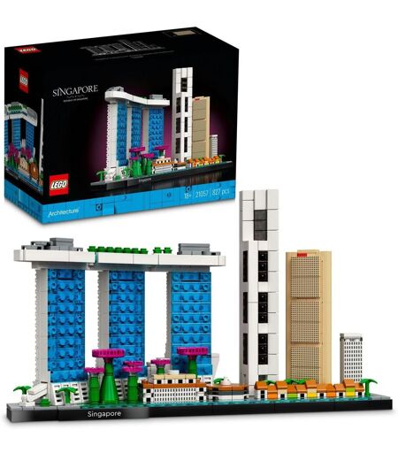 Découvrez l'une des villes les plus captivantes au monde avec LEGO Architecture Skyline Collection : Singapour (21057). Savourez de précieux moments de détente en recréant Marina Bay Sands, l'OCBC Centre, One Raffles Place, le marché alimentaire Lau Pa Sat, The Fullerton Hotel Singapore et Supertree Grove à Gardens by the Bay. Ajoutez la rivière Singapour et des arbres pour compléter le paysage urbain LEGO le plus grand et le plus complexe jamais réalisé. Le bonheur de créer Les instructions étape par étape incluses permettent de se détendre en créant, même si l'on débute dans la construction LEGO. Découvrez de nouvelles techniques pour orienter les bâtiments sur la base afin de créer une pièce d'exposition surprenante. Voyagez sans vous déplacer Ce set collector fait partie d'une série de sets LEGO Architecture destinés aux adultes, qui allie construction et évasion. Un formidable cadeau à vous offrir ou à offrir à un proche passionné de voyages, d'histoire et d'architecture. - Projet de construction pour adultes ? Ce modèle LEGO Architecture Skyline Collection (21057) recrée certains des bâtiments les plus emblématiques de Singapour dans le style LEGO - Monuments célèbres en briques ? Marina Bay Sands, l'OCBC Centre, One Raffles Place, le marché Lau Pa Sat (également connu sous le nom de Telok Ayer), The Fullerton Hotel Singapore et Supertree Grove à Gardens by the Bay - Détails d'aménagement paysager ? Ajoutez des éléments LEGO représentant la rivière Singapour et des arbres, et découvrez des techniques de construction permettant de donner diverses orientations aux bâtiments sur la base - Idée de cadeau ? Offrez ce set de construction créative à vous-même ou à des amis partageant vos centres d'intérêt, qui ont visité ou rêvent de visiter Singapour, ou qui sont tout simplement passionnés de voyages, d'histoire et d'architecture - Construisez et exposez ? Mesurant plus de 16 cm de haut, 28 cm de large et 9 cm de profondeur, ce paysage urbain à construire peut être exposé chez vous ou dans votre bureau - Expérience immersive ? Ce set de construction collector de 827 pièces vous plongera dans un voyage créatif permettant de vous détendre, de recharger vos batteries et de vous enrichir sur le plan personnel - Instructions étape par étape ? Inclut un livret qui comprend des instructions illustrées ainsi que des informations sur Singapour et des idées en lien avec le modèle - Sets LEGO collectors pour adultes ? Ce set LEGO Architecture Skyline en hommage à Singapour fait partie d'une série de sets de construction d'exception destinés aux adultes qui, comme vous, apprécient les loisirs créatifs - Une garantie de qualité ? Les éléments LEGO sont conformes aux normes industrielles les plus rigoureuses, afin de garantir qu'ils s'assemblent et se séparent toujours parfaitement - La sécurité avant tout ? Les briques et pièces LEGO sont soumises à des tests de chute, de chaleur, d'écrasement et de torsion, puis analysées afin de vérifier qu'elles satisfont... ...