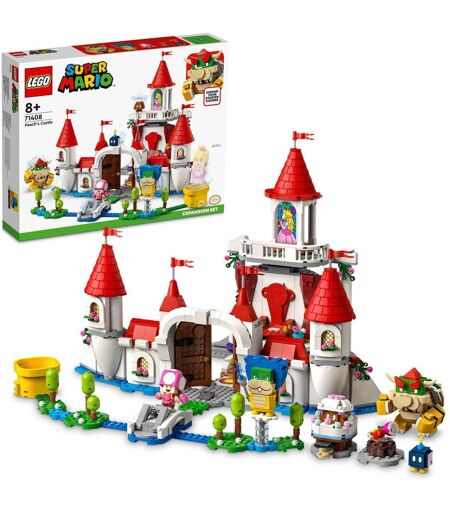 Enrichissez le jeu avec cette fabuleuse réplique du château de Peach Laissez les enfants ajouter un lieu emblématique à leur univers LEGO Super Mario avec l'Ensemble d'Extension Le Château de Peach (71408). Avec ce jouet de construction Super Mario, il y a tant de choses à explorer pour les joueurs et de nombreuses façons de gagner des pièces numériques avec leurs figurines interactives LEGO Mario, LEGO Luigi ou LEGO Peach (non incluses). Le jouet château fort pour enfants comprend une salle du trône avec un mur tournant pour révéler Bowser, un vitrail à l'effigie de Peach, un tableau de Bob-omb avec une brique d'action, un gâteau contenant un Goomba, un tuyau spécial : Château de Peach, une brique d'action Temps, un pont cassé, un fruit violet et plus encore. Il y a également 5 figurines LEGO Super Mario avec lesquelles les enfants peuvent jouer - Bowser, Ludwig, Toadette, un Goomba et un Bob-omb (Remarque : le Pack de Démarrage 71360, 71387 ou 71403 est nécessaire pour le jeu interactif). Les enfants peuvent profiter de nombreux défis LEGO amusants avec le château de la princesse Peach ! Ils peuvent faire tomber Ludwig du nuage, réparer le pont cassé et saluer Toadette. Voyez s'ils peuvent retrouver le badge d'action caché derrière le tableau pour obtenir un bonus et vaincre un Bob-omb. Ensuite, mangez du gâteau (mais attention au Goomba à l'intérieur !) et attrapez le fruit violet. Enfin, il est temps de sauter sur la brique d'action Temps pour retrouver Bowser qui se cache derrière le trône et le retourner pour le vaincre ! Un cadeau idéal pour les enfants de 8 ans et plus, ce jouet à construire Super Mario comprend 5 personnages et est idéal pour jouer en solo ou en groupe. Les packs de démarrage et les ensembles d'extension LEGO Super Mario permettent aux fans d'agrandir, de reconstruire et de créer leurs propres niveaux pour des heures de jeu à collecter des pièces. Contient 1 216 pièces Les enfants peuvent étendre leur univers LEGO Super Mario avec cet ensemble d'extension du château de la princesse Peach, qui comprend un jouet de château et 5 figurines Super Mario Comprend une brique d'action Temps, un vitrail Peach, une peinture Bob-omb avec un Action Tag caché, un gâteau avec un Goomba caché à l'intérieur et plus encore Comprend également un tuyau spécial : Le jouet de château de Peach, le pont « cassé » et 5 figurines LEGO Super Mario - Bowser, Ludwig, Toadette, un Goomba et un Bob-omb Les enfants aident LEGO Mario, LEGO Luigi ou LEGO Peach (figurines non incluses) à activer la plateforme coulissante pour faire tourner le mur et révéler Bowser Ce jouet pour enfants de 8 ans est compatible avec les autres ensembles LEGO Super Mario, nécessite un parcours d'initiation LEGO Super Mario (71360, 71387 ou 71403) pour jouer L'application compagnon LEGO Super Mario offre des instructions et plus d'idées : visitez LEGO.com/devicecheck pour une liste des appareils Android et iOS compatibles Cet ensemble constitue un cadeau amusant... ...