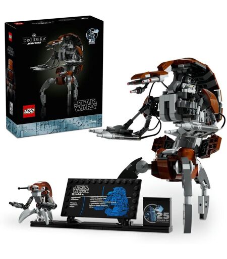 Célébrez le 25e anniversaire de Star Wars : La Menace fantôme et des sets LEGO Star Wars avec cette figurine de Droïdeka LEGO à collectionner (75381). Ce droïde destroyer LEGO à construire et exposer pour adultes fait revivre l'invasion de Naboo dans Star Wars : La Menace fantôme et Star Wars : The Clone Wars. Il inclut des détails réalistes, comme les bras qui bougent d'avant en arrière pour tirer et des pattes amovibles à fixer pour lui redonner sa forme de boule emblématique. Le support avec une plaque descriptive, une brique spéciale 25e anniversaire de LEGO Star Wars et un emplacement pour le petit Droïdeka LEGO ajoute une touche finale à ce set de construction d'exception. Ce modèle à construire fait partie d'une collection de sets LEGO Star Wars (vendus séparément) pour les adultes en quête d'activités relaxantes. Retrouvez les instructions étape par étape dans la boîte et l'application LEGO Builder propose des outils numériques de zoom et de rotation. - Figurine de droïde Droïdeka LEGO à construire - Créez une décoration amusante avec un droïde destroyer Droïdeka en briques à collectionner, vu dans Star Wars : La Menace fantôme et Star Wars : The Clone Wars - Un fantastique set LEGO Star Wars à exposer, riche en détails ludiques - Faites bouger les bras du Droïdeka d'avant en arrière dans un mouvement de tir réaliste, et fixez les pattes pour lui redonner sa forme de boule - Une figurine de Droïdeka LEGO - Le droïde destroyer principal de ce set s'accompagne d'une petite figurine de Droïdeka LEGO - Un hommage au 25e anniversaire - Ce set unique inclut un support pouvant accueillir la petite figurine de Droïdeka LEGO et s'orne d'une plaque présentant le Droïdeka et d'une brique spéciale 25e anniversaire de LEGO Star Wars - Cadeau Star Wars pour adultes - Faites-vous plaisir ou offrez ce set d'exception à un autre adulte fan de Star Wars ou à un collectionneur de sets LEGO Star Wars - Instructions 3D intuitives - L'application LEGOBuilder vous permet de zoomer, de faire pivoter une version 3D numérique de ce modèle pendant la construction, de suivre votre progression, de sauvegarder vos sets et plus encore - Sets LEGO Star Wars pour adultes - D'une galaxie lointaine, très lointaine à votre salon, les sets de construction LEGO Star Wars pour adultes sont conçus pour les personnes qui, comme vous, apprécient les activités créatives relaxantes - Construire, décorer et jouer - La figurine de Droïdeka LEGO en briques de ce set de 583 pièces mesure plus de 21 cm de haut ...