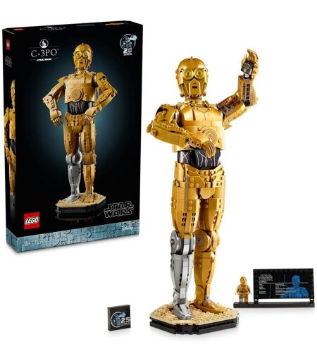 Construisez et exposez ce droïde C-3PO LEGO Star Wars aux détails complexes. Idée de cadeau nostalgique pour les adultes et tous les fans de la saga Star Wars classique, ce set collector propose un défi créatif immersif et enrichissant. Recréez chaque détail de ce personnage apprécié de Star Wars et faites tourner sa tête ou bouger ses bras pour créer des poses familières. Ce set LEGO Star Wars pour adultes contient un support avec une plaque C-3PO, de l'espace pour la minifigurine LEGO de C-3PO incluse et une brique spéciale 25e anniversaire de LEGO Star Wars. Pour une décoration encore plus attrayante, exposez votre création aux côtés de R2-D2¿ LEGO Star Wars (set 75379, vendu séparément) et orientez un des bras de C-3PO de sorte à recréer la tape sur la tête de son vieil ami. Savourez une expérience de construction intuitive avec l'appli LEGO Builder, qui vous permet de zoomer, faire pivoter le modèle en 3D, suivre votre progression et sauvegarder tous vos sets au même endroit. - Figurine du droïde C-3PO LEGO Star Wars à construire - Faites entrer chez vous l'un des personnages les plus adorables de la galaxie Star Wars avec ce C-3PO réaliste à construire et exposer - Détails réalistes - Recréez l'apparence de C-3PO dans le style LEGO et faites tourner sa tête et bouger ses bras pour créer des poses familières - Minifigurine de C-3PO LEGO Star Wars - La figurine principale de C-3PO incluse dans ce set s'accompagne d'une minifigurine LEGO de C-3PO - Un hommage au 25e anniversaire - Le set inclut un support orné d'une plaque présentant C-3PO et pouvant accueillir la minifigurine LEGO de C-3PO, ainsi qu'une brique spéciale 25e anniversaire de LEGO Star Wars - Idée de cadeau nostalgique pour les adultes - Faites-vous plaisir ou offrez ce modèle en briques à collectionner à un autre adulte fan de la saga Star Wars classique ou à un collectionneur de sets LEGO Star Wars - Sets Star Wars à collectionner - Réunissez 2 vieux amis en exposant C-3PO aux côtés du droïde R2-D2 en briques LEGO (75379, vendu séparément) et faites en sorte que le bras de C-3PO tapote la tête de R2-D2 - Sets LEGO Star Wars pour adultes - D'une galaxie lointaine, très lointaine à votre intérieur, les sets LEGO Star Wars pour adultes sont conçus pour les personnes qui, comme vous, apprécient les activités créatives immersives - Décoration amusante pour l'intérieur des fans de Star Wars - La figurine du droïde C-3PO en briques LEGO de ce set de 1 138 pièces mesure plus de 38 cm de haut ...