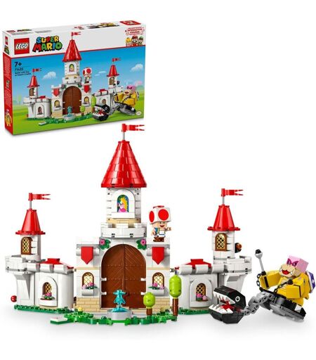 Invitez les enfants à explorer, se battre et s'amuser dans un lieu culte de Super Mario avec Combat contre Roy au château de Peach LEGO Super Mario (71435). Ce jouet avec des personnages Nintendo est un beau cadeau pour les jeunes fans de jeux vidéo dès 7 ans. Il inclut un château en briques LEGO qui s'ouvre, des murs faciles à reconstruire qui s'effondrent, une tour, une catapulte, un trône rotatif et une fontaine dans le jardin. Il y a également 3 figurines LEGO Super Mario : Roy (pour la première fois dans un set LEGO Super Mario), un Chomp et Toad. Ajoutez une figurine LEGO Mario, LEGO Luigi ou LEGO Peach (non incluse) pour le jeu interactif. Aidez-la à vaincre Roy et à prendre le contrôle de son Chomp, trouvez les briques d'action cachées et débloquez des réactions numériques. Retrouvez les instructions dans la boîte et dans l'appli LEGO Super Mario, une véritable mine d'inspiration pour découvrir d'autres façons de construire et jouer. - Jouet Nintendo amusant pour enfants - Explorez un château de princesse, mettez-vous dans la peau de personnages de Super Mario, combattez Roy et plus encore avec ce set contenant le château de Peach LEGO Super Mario - Inclut 3 figurines LEGO Super Mario - Roy (pour la première fois dans un set LEGO Super Mario), un Chomp et Toad - Set débordant d'aventure - Le château détaillé s'ouvre pour jouer et inclut des murs qui s'effondrent, une tour, une catapulte, un trône rotatif, une fontaine dans le jardin et des briques d'action cachées - Jeu numérique interactif - Aidez la figurine de LEGO Mario, LEGO Luigi ou LEGO Peach (non incluse) à vaincre Roy et à prendre le contrôle de son Chomp, et prenez place sur le siège du piano pour jouer de la musique - Application LEGO Super Mario - Téléchargez l'application qui propose des instructions de montage, des idées créatives et plus encore. Pour la liste des appareils Android et iOS compatibles, consultez LEGO.com/devicecheck - Stimuler l'imagination des enfants - Conçus pour jouer seul ou à plusieurs, les sets LEGO Super Mario offrent des possibilités d'extension et de transformation ainsi que de nombreux défis amusants récompensés par des pièces numériques - Dimensions - Le château de ce set de 738 pièces mesure plus de 26 cm de haut, 31 cm de large et 21 cm de profondeur, et peut être combiné avec d'autres sets LEGO Super Mario, vendus séparément ...